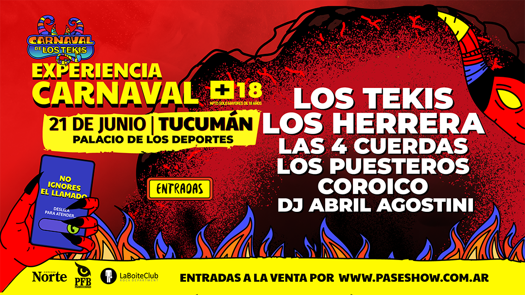 La fiesta más esperada del invierno tucumano ya tiene fecha: el próximo viernes 21 de junio, el Palacio de los Deportes será sede de la Experiencia Carnaval, un megaevento organizado por Los Tekis, que reunirá a destacadas bandas de la música folklórica y popular del norte argentino.