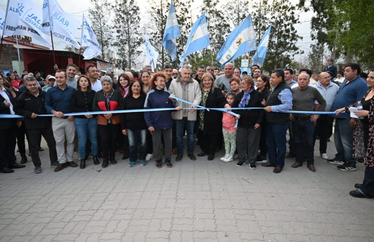 El gobernador Osvaldo Jaldo encabezó este viernes en Arcadia una serie de inauguraciones de obras de infraestructura que incluyen un sistema de iluminación LED sobre la ex Ruta 38, la habilitación de 4.500 metros cuadrados de pavimento articulado en el barrio San Cayetano y el anuncio de la construcción de 3.000 metros cuadrados de veredas comunitarias en el barrio Fátima.