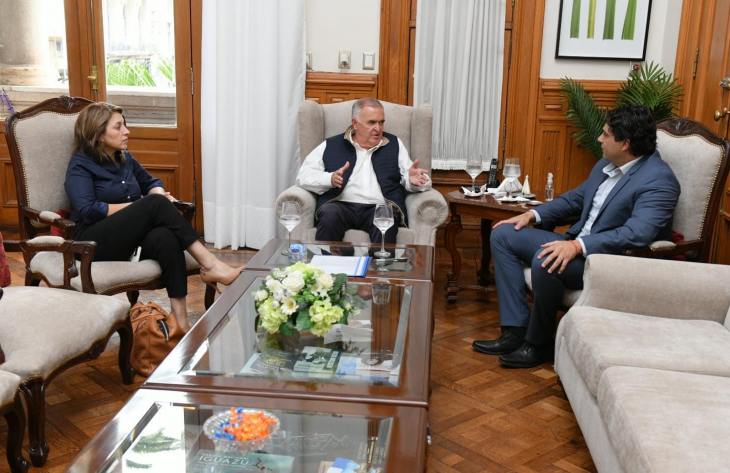 El gobernador Osvaldo Jaldo mantuvo una reunión de trabajo en Casa de Gobierno con el intendente de Juan Bautista Alberdi, Bruno Romano, en la que analizaron la situación climática reciente, el avance de obras estratégicas en la ciudad y los principales proyectos previstos para el año en curso. Del encuentro también participó la legisladora Nancy Bulacio.