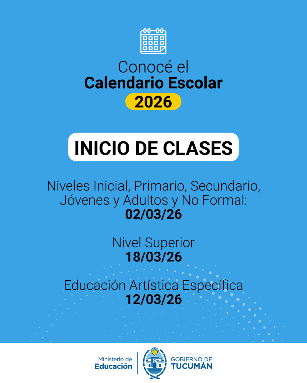 El Ministerio de Educación de Tucumán aprobó, mediante la Resolución Ministerial N° 0030 /5(MEd), el esquema administrativo y pedagógico que regirá en todas las escuelas de la provincia durante este año 2026. El instrumento legal establece un cronograma unificado para instituciones de gestión estatal y privada, asegurando la organización de los tiempos escolares en todos los niveles y modalidades.