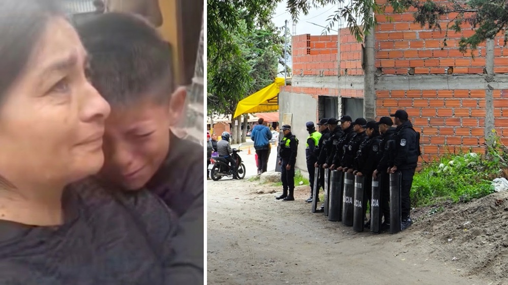 Imágenes registradas durante el operativo muestran a efectivos policiales y una retroexcavadora trabajando sobre una edificación de material en proceso de construcción, ante la presencia de vecinos que observaron el procedimiento.