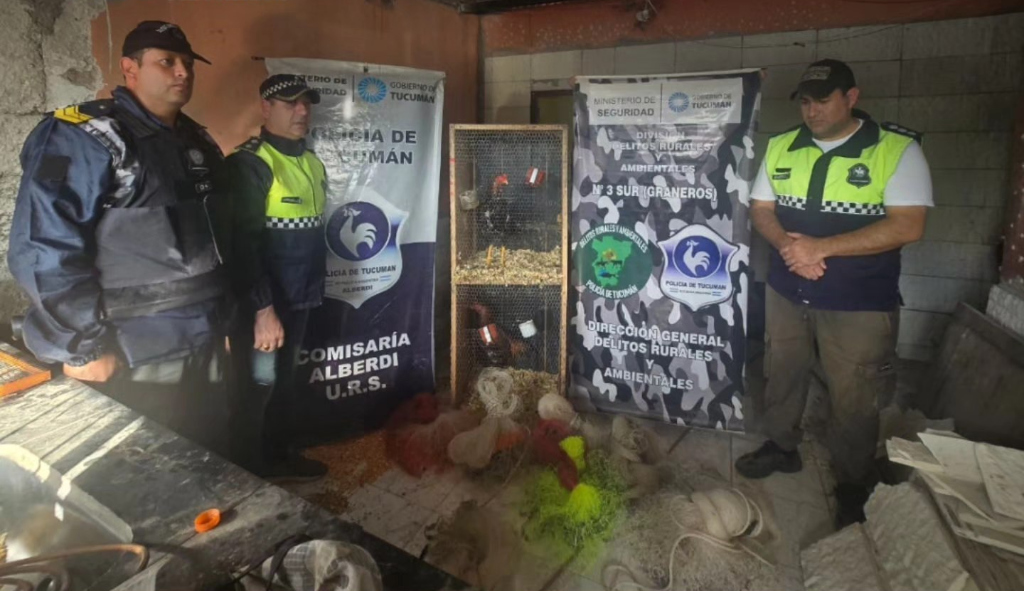 Otro hallazgo que llamó la atención de los investigadores fue la presencia de dos gallos de riña, cuyas características serían compatibles con animales preparados para peleas clandestinas. Por este motivo se dio intervención al área especializada en delitos rurales.